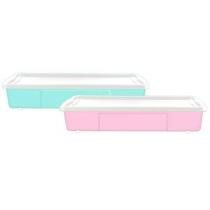 2 X 45 Litre Underbed Box With Wheels Pink/Blue Box