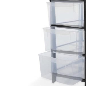 10 x 3 Drawer Plastic Storage Tower Unit – Black (Pack of 10)