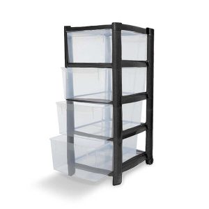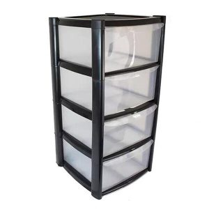 4 Drawer Plastic Storage Tower Unit – Black