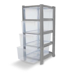 4 Drawer Plastic Storage Tower Unit – Silver