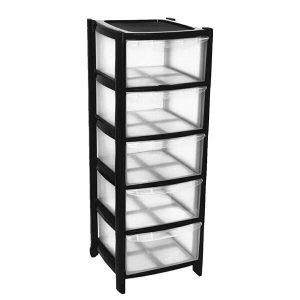 5 Drawer Plastic Storage Tower Unit – Black