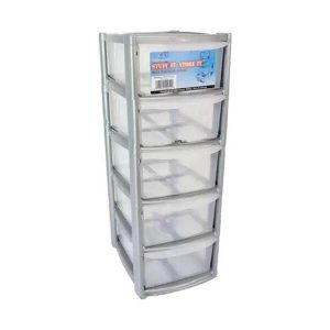 5 Drawer Mini/Desktop Plastic Storage Tower Unit – Silver